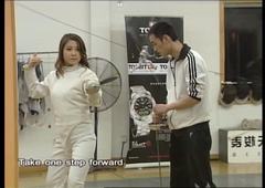 这时,只见俱乐部的元老级会员谢晓亮手捧一大束玫瑰,走到一位“女观众”面前--咦,这不就是晓亮漂亮的女朋友吗?--莫非,晓亮要在自己心爱的剑道上、向自己心爱的女孩求婚?